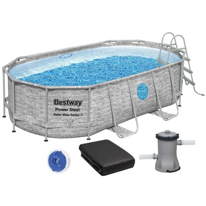 Каркасний басейн Bestway 56714 (427х250х100 см) з картриджним фільтром, драбиною і захисним тентом