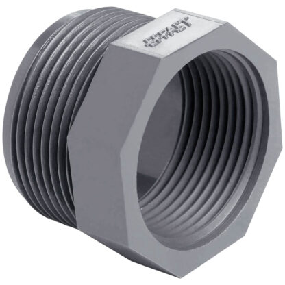 Коротка різьбова втулка-футорка Effast RERRCE з непластифікованого полівінілхлориду PVC-U. Виробництво Італія. Вироби з ПВХ підходять для транспортування рідин з максимальною температурою до +60°C. При збільшенні температури робочої рідини граничний тиск знижується. Ціна вказана за одну одиницю.
